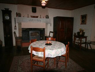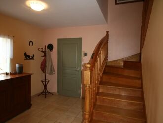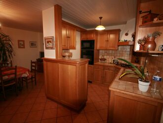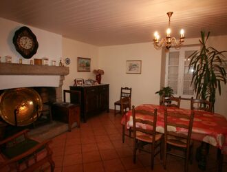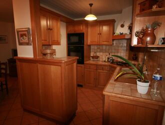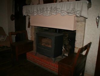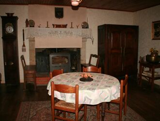 Elle comprend au rez-de-chaussée, cuisine aménagée et équipée ouverte sur le séjour avec poêle à bois.