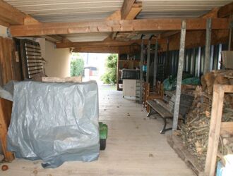 Garage (chaufferie et buanderie) avec porte électrique, grand préau de 51 m².