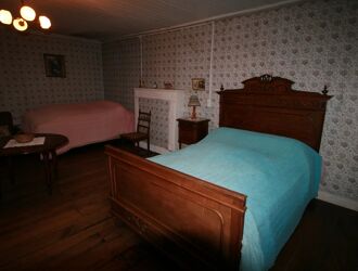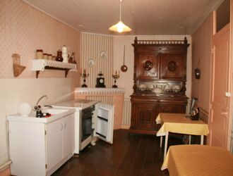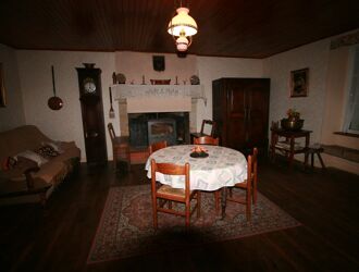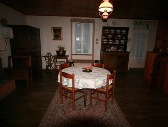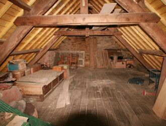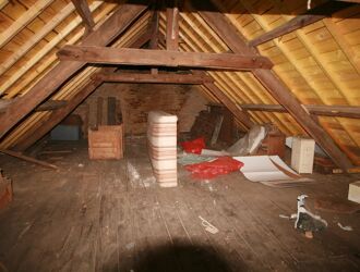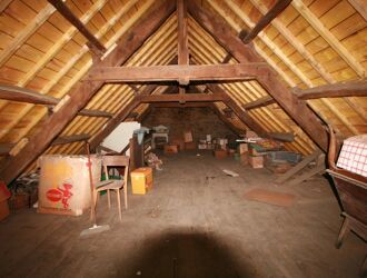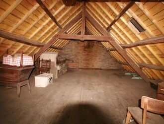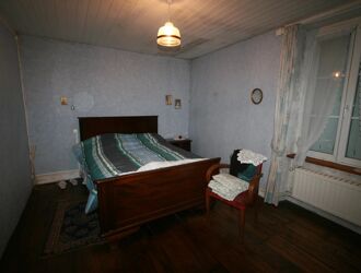 A l'étage, couloir desservant 3 chambres, salle de bains-wc, ancienne cuisine avec salle à manger.
