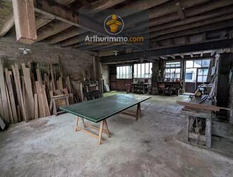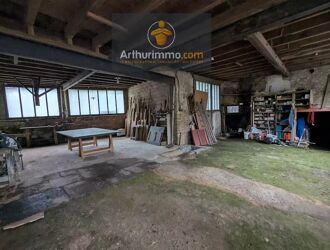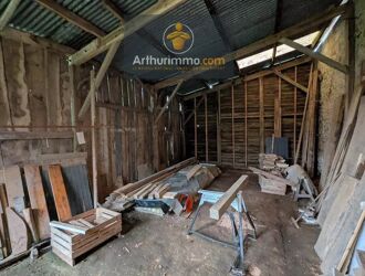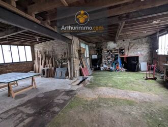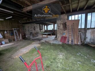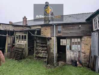 Située à LANOUÉE, grand hangar avec une maison de bourg accolée sur sous-sol, à rénover, comprenant au rez-de-chaussée, deux pièces avec cheminée.