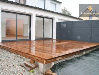 Grande terrasse en bois et jardin exposés sud.