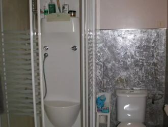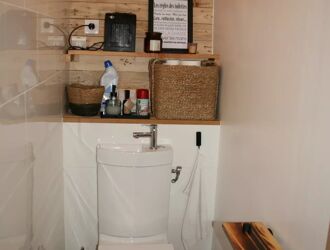 1 er logement (16,60m2): au rdc : une suite parentale comprenant une chambre avec salle d’eau et wc. Idéale pour de la location saisonnière. Cour couverte commune avec terrasse en bois et rangement pour les vélos