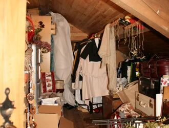 Garage avec grenier, terrasse de 25 m², trois hangars.