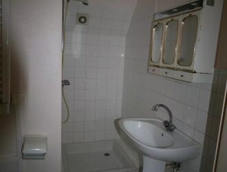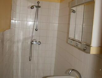 À l'étage, appartement de 33,20 m², habitable de suite avec un rafraîchissement à prévoir, comprenant pièce de vie, couloir, chambre et salle d'eau avec toilettes. Réf. 1782