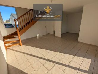 Située à JOSSELIN, Maison de 63 m² hab., mitoyenne d'un côté, comprenant au rez-de-chaussée, cuisine, séjour, dégagement, toilettes et garage.