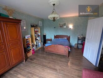 Maison de 150m² hab. comprenant au RDC : entrée avec buanderie, couloir, cuisine aménagée et équipée avec cheminée insert, séjour avec cheminée et bar, 4 chambres, salle d'eau-WC, buanderie, bureau, vestiaire, salle d'eau, WC
