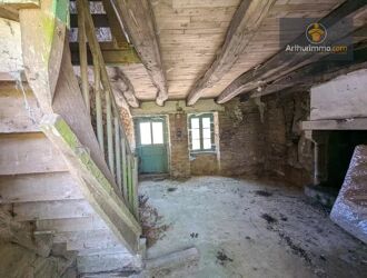 En exclusivité, située au centre d'un village historique de GUEGON, maison en pierre sous ardoises à rénover comprenant une pièce de vie avec cheminée. Grenier au-dessus.