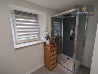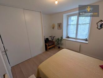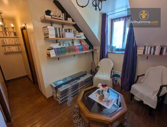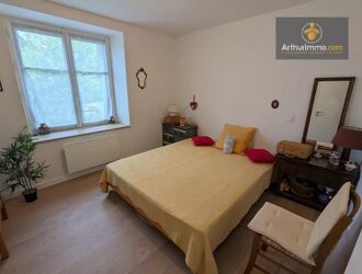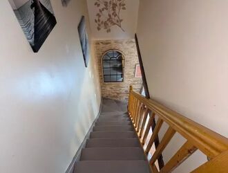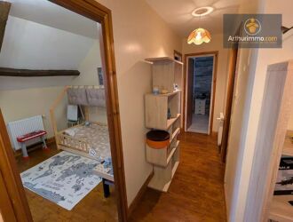 Mitoyenne d'un côté, (non gênant) elle comprend au rez-de-chaussée, cuisine aménagée et équipée, séjour avec poêle à bois et mur avec pierres apparentes, salle à manger avec petit poêle à bois, buanderie et toilettes. On accède à l'étage par 2 escaliers séparés. L'étage n'est pas communiquant :