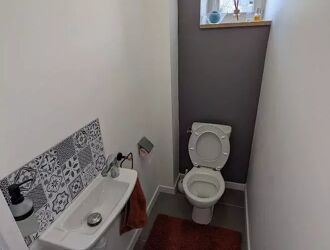 A l'étage, le palier dessert deux chambres et une salle d'eau avec WC broyeur.